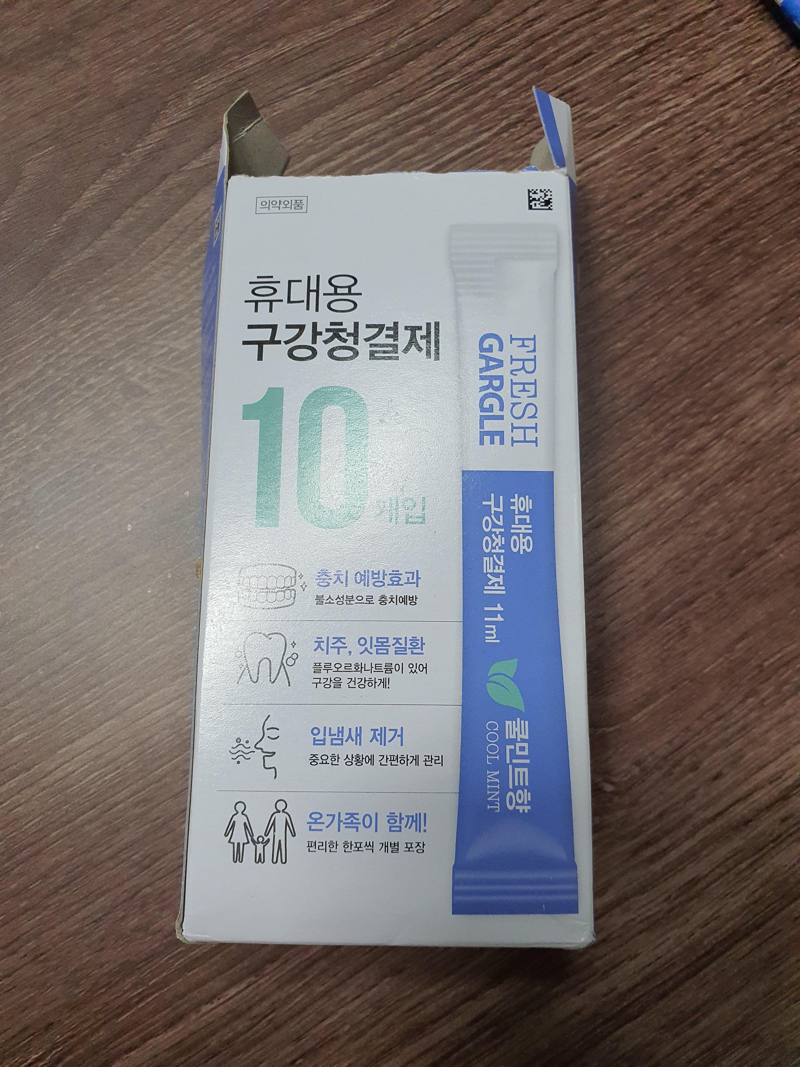 오늘처음 사용해봤는데요. 처음에 이거 가루가 들어서 물에 희석해서 가글하는건가보다 했는데 뜯어보니 그냥 가글액이 들어있습니다.